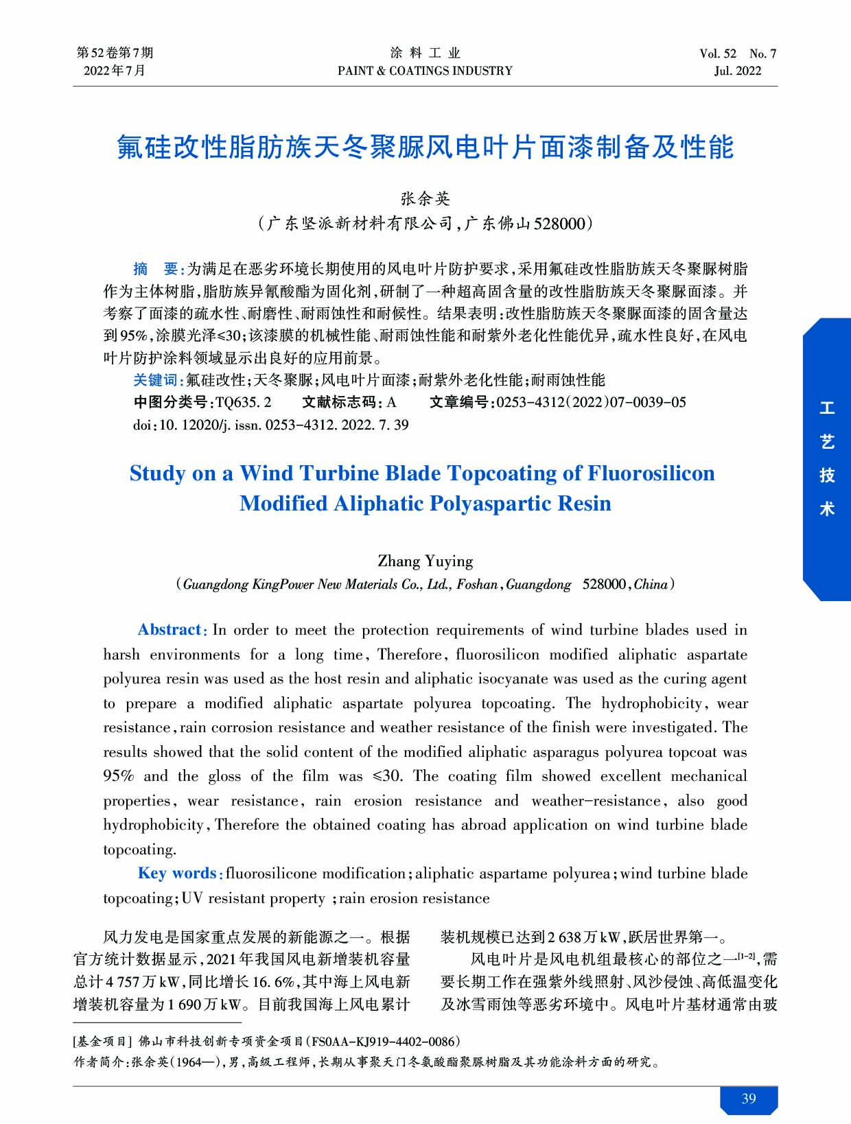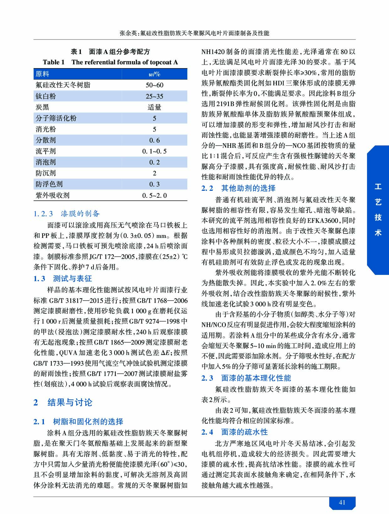 《涂料工業(yè)》論文——《氟硅改性脂肪族天冬聚脲風(fēng)電葉片面漆制備及性能》