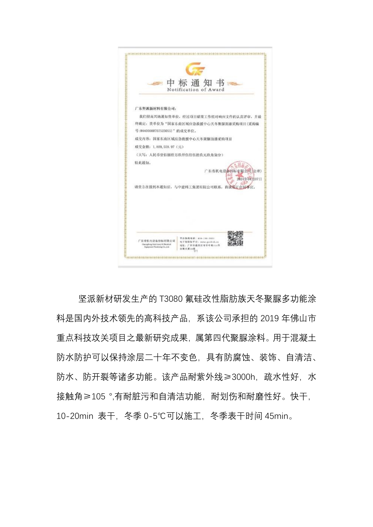 高明研究院創新團隊堅派新材再次參與重大工程項目建設